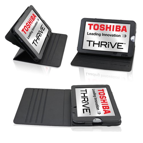 Toshiba Thrive 360 Degree ROTATING Case Cover & Dock (Black). Two Cases in One. Detachable, Suede Interior & Multi-Angle Adjustable Stand for Toshiba Thrive 10.1 -inch Wi-Fi Tablet PC + Bonus Stylus by Aurum Features